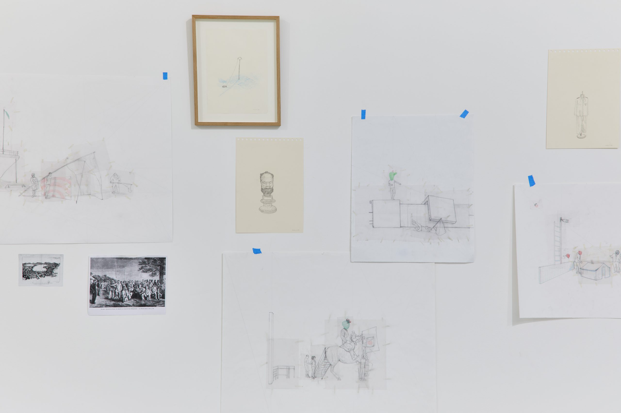 Ténu, délicat, épuré, le travail de Massinissa Selmani plonge pourtant dans les strates épaisses de l’Histoire. Sans éclat tonitruant, il déploie un subtil et patient jeu de piste, où chaque indice révèle les contradictions et aberrations des stratégies politiques, en particulier celles liées aux logiques coloniales. Dans ce projet spécifique, Massinissa met en lumière des causes tues ou reléguées à la marge, trop fragiles pour trouver un relais dans les récits dominants de réparation des peuples opprimés. Sa pratique, fondée sur la recherche constante des potentialités du dessin, l’amène ici à l’explorer sous une forme documentaire.