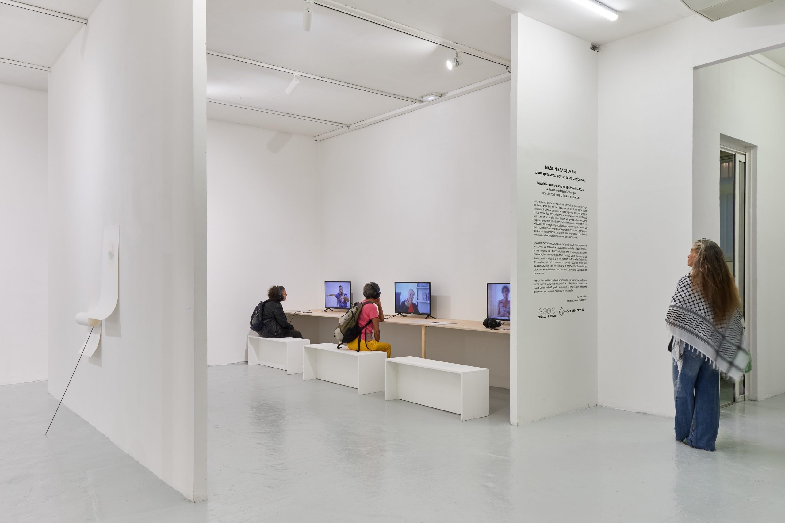 Vues de l’exposition Dans quel sens traverser les antipodes, Massinissa Selmani au Château de Servières, 2025 © Jean-Christophe Lett